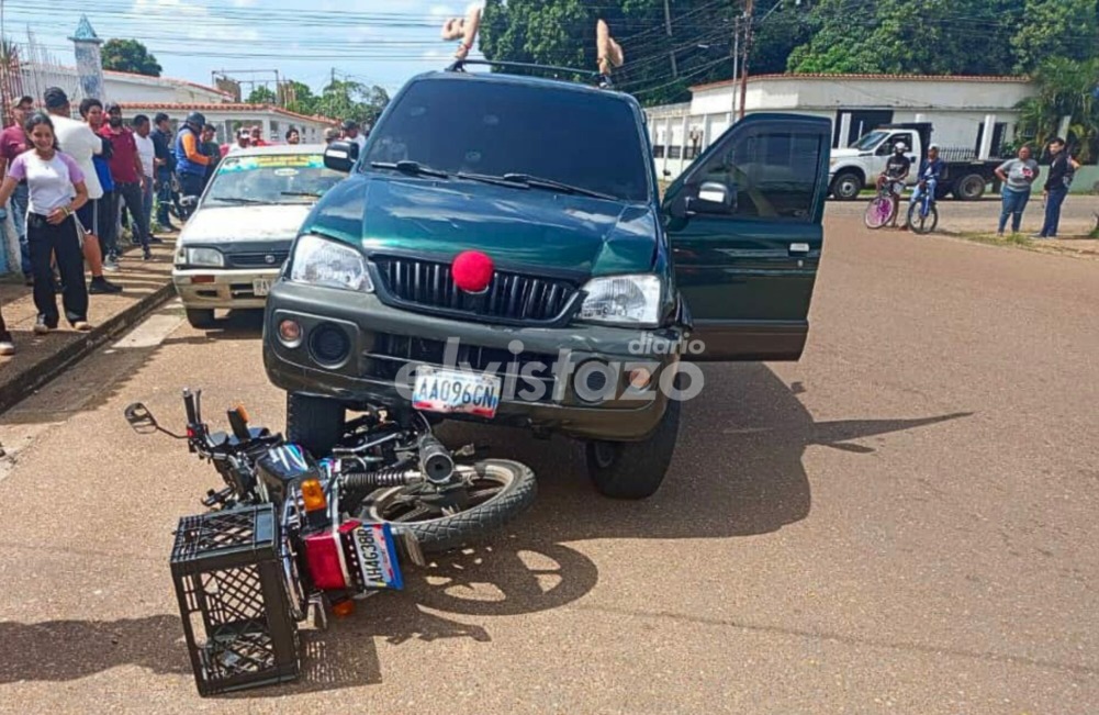Una colisión entre dos motorizados dejó a ambos conductores lesionados. El accidente ocurrió en la calle Venezuela entre calles Pichincha y Las Flores de Guanipa, aproximadamente a las 7:40 pm del jueves 16 de enero.