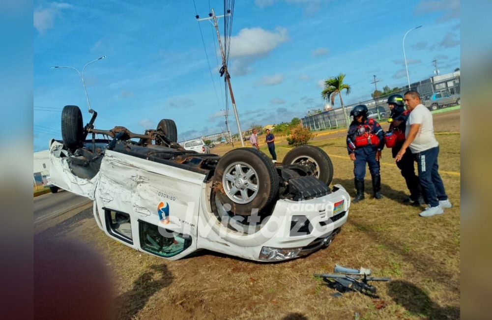 La mañana de este jueves (8:15 am) se registró una colisión en la Av. Intercomunal frente al Ipasme El Tigre, viéndose involucrados una camioneta Chevrolet Blazer y una pick up Great Wall que terminó volcada en el área verde ubicada en el medio de la vía.