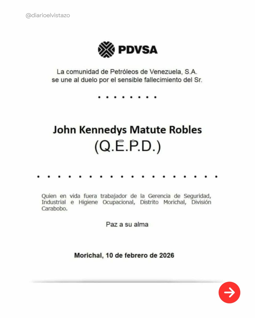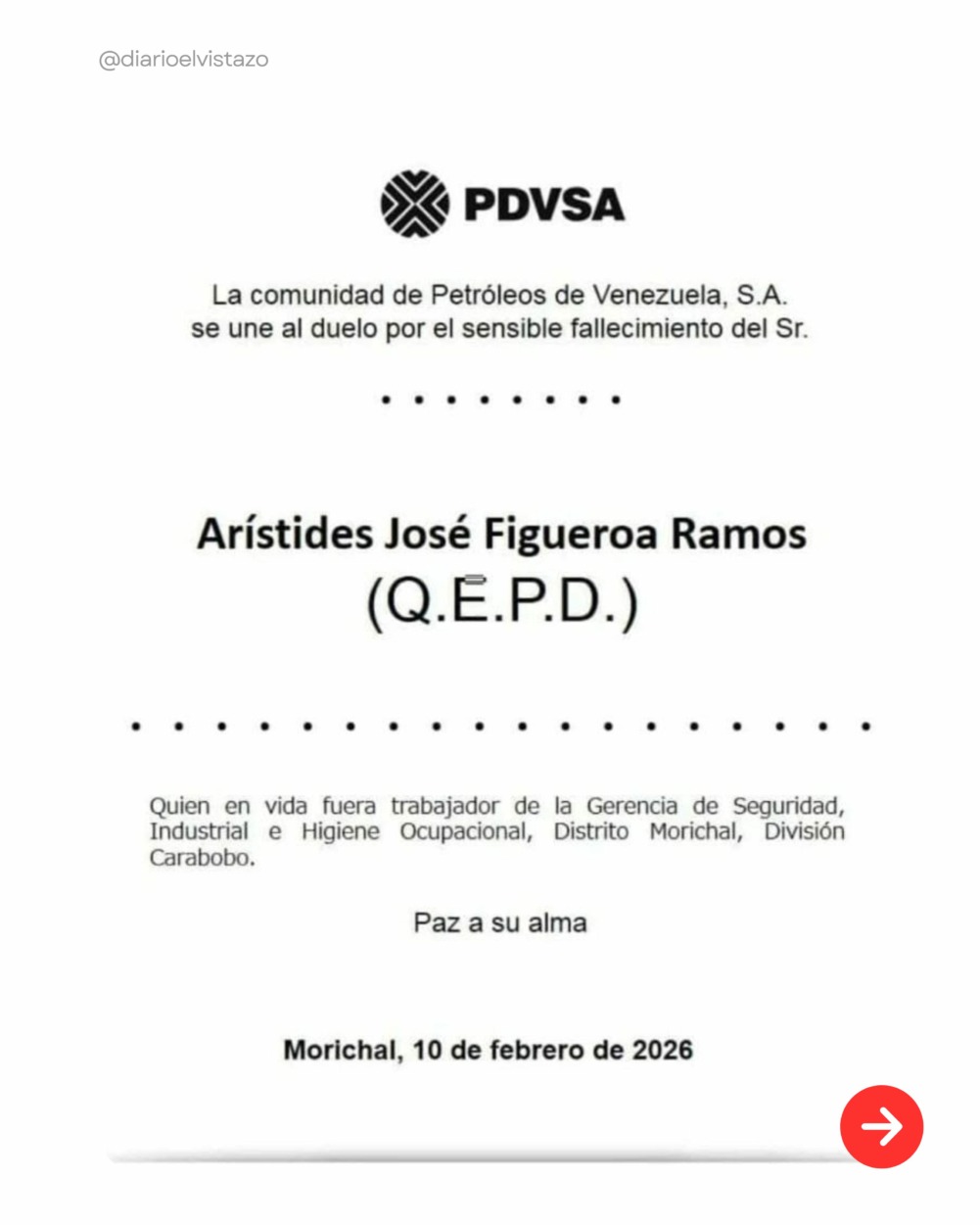 Dos bomberos de la estatal PDVSA fallecieron el martes 10 de febrero durante el combate de un incendio registrado en Morichal, estado Monagas. Se trata de Arístides José Figueroa Ramos y John Kennedy Matute Robles, adscritos a la Gerencia de Seguridad Industrial e Higiene Ocupacional, Distrito Morichal, División Carabobo.