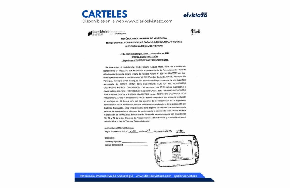 El Tribunal Primero de Municipio Ordinario y Ejecutor de Medidas de los Municipios Simón Rodríguez y San José de Guanipa de la Circunscripción Judicial del estado Anzoátegui, dirigido por la jueza Amarilys Cairo Narváez emitió un Edicto de fecha 7 de abril de 2025 en atención a todas aquellas personas que puedan tener interés directo o manifiesto en las resultas de la Solicitud de Declaración de Únicos y Universales Herederos del extinto ciudadano Víctor Enrique Zaurin Calderón, quien falleció en el municipio San José de Guanipa del estado Anzoátegui en fecha 29/12/2024, quien era venezolano, mayor de edad, titular de la cédula de identidad N° V- 3.854.992 cuyo último domicilio conocido era calle 19 Sur, entre quinta y sexta carrera, Qta. Mava, sector Pueblo Nuevo Sur de la ciudad de El Tigre, municipio Simón Rodríguez, estado Anzoátegui.