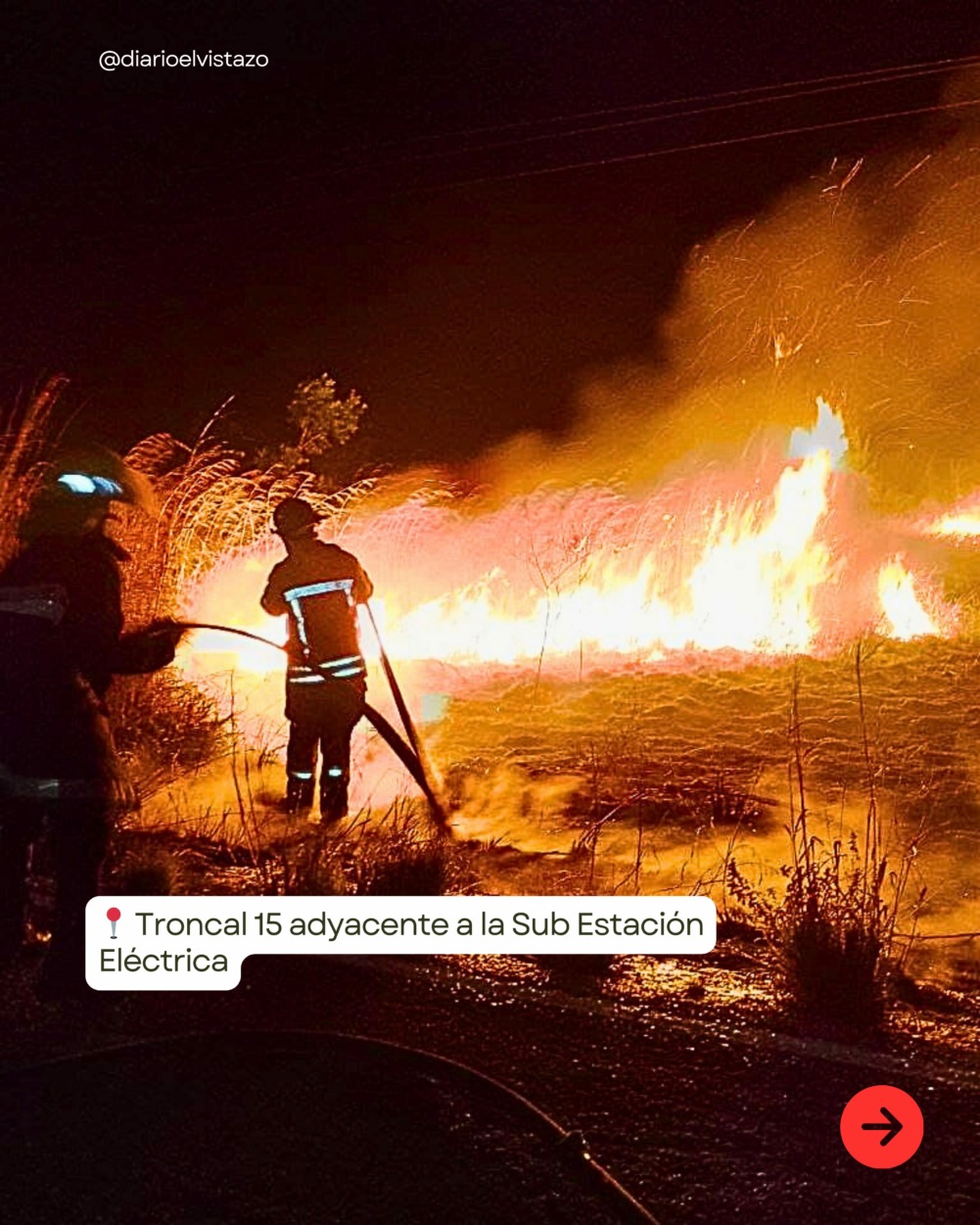 Finalmente acudieron nuevamente a la Troncal 15 adyacente a la Sub Estación Eléctrica. Se consiguieron un incendio de vegetación a orillas de la carretera (700 metros lineales aproximadamente). Trabajaron durante 45 minutos utilizando bastidores y 3.000 litros de agua.