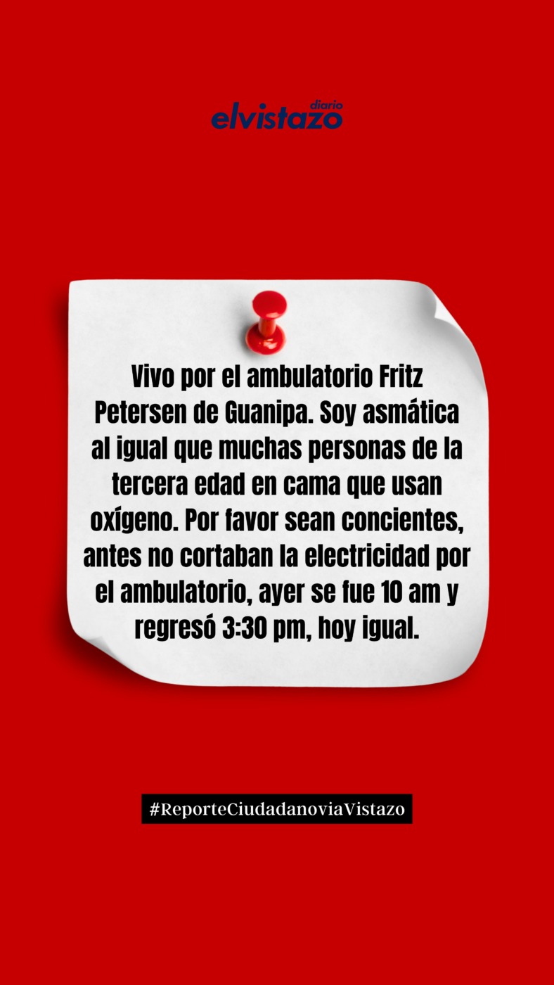 Habitantes del municipio Guanipa al sur del estado Anzoátegui, dieron a conocer este jueves algunos de los inconvenientes asociados a los recientes cortes eléctricos que están padeciendo. Aseguran que la falta de electricidad por hasta 5 horas en horario productivo y en días consecutivos, no les permite trabajar, como en el caso de varios comercios ubicados en el Centro Comercial Malaver. Otras personas aseguraron en comunicación con El Vistazo, que su salud se ve comprometida ya que son pacientes con afecciones respiratorias y dependen de nebulizaciones. Lea aquí algunos comentarios.