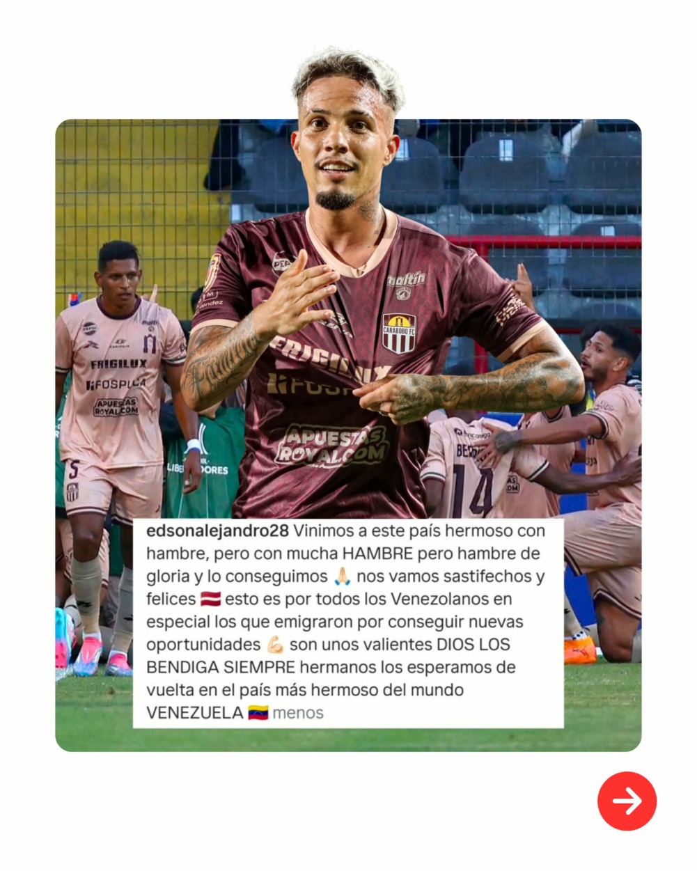 Justamente, Tortolero también se pronunció en sus redes sociales. «Vinimos con mucha hambre, pero hambre de gloria y la conseguimos». También expresó palabras de admiración por todos los venezolanos que migraron a Chile. «Son unos valientes, los esperamos en el país más hermoso del mundo, Venezuela «.