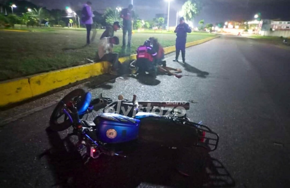La noche del viernes 13 de septiembre se registró el derrape de una moto Yamaha modelo JY110, año 2005, en la avenida José Antonio Anzoátegui de Barcelona, específicamente en la Redoma de Los Pájaros, minutos antes de las 8:00 pm.